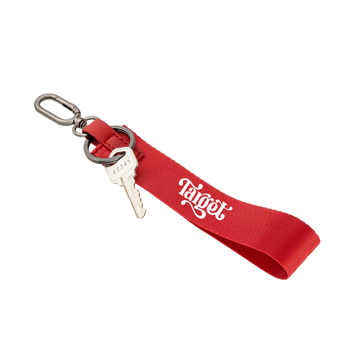 Hard to miss and even harder to lose. This bold, oversized keychain is made from lightweight performance fabric thats tough, water-repellent, and built to last. The bright red color makes it easy to spot in your bag or on the go, while the wide strap offers a secure grip. Finished with a sleek gunmetal carabiner and key ring, its ready for everyday adventures.